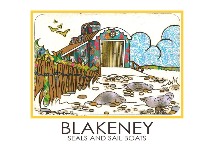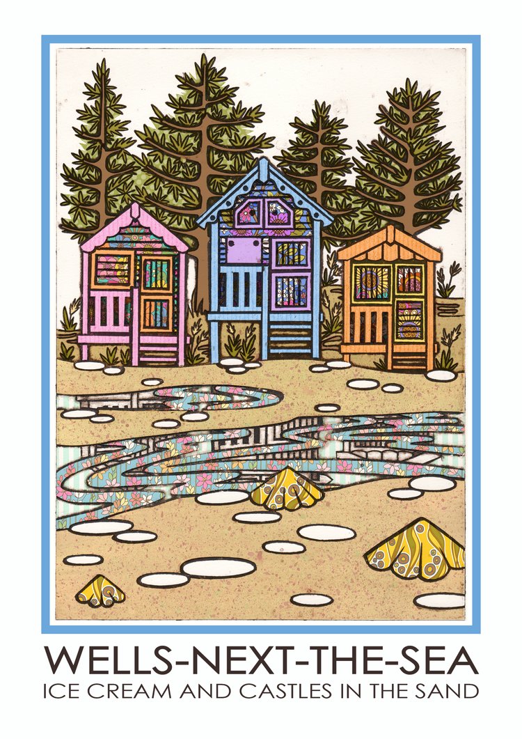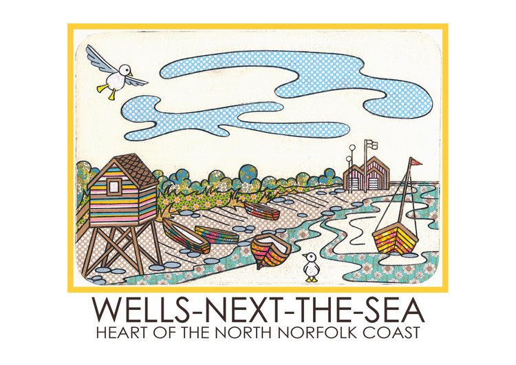 These posters incorporate a reproduced collagraph print of locations in & around Wells Netx The Sea.