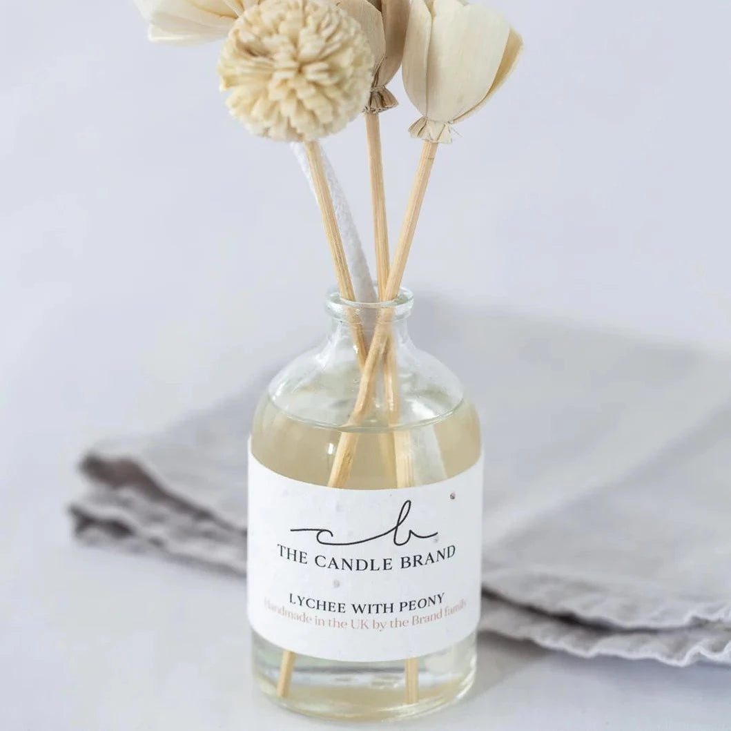 A uniquely fragranced flower bouquet powered by both reeds and a cotton rope; beautifully displayed in a clear glass vase. Featuring a wildflower seeded label ready to be planted. No more boring reeds, no more messy turning!