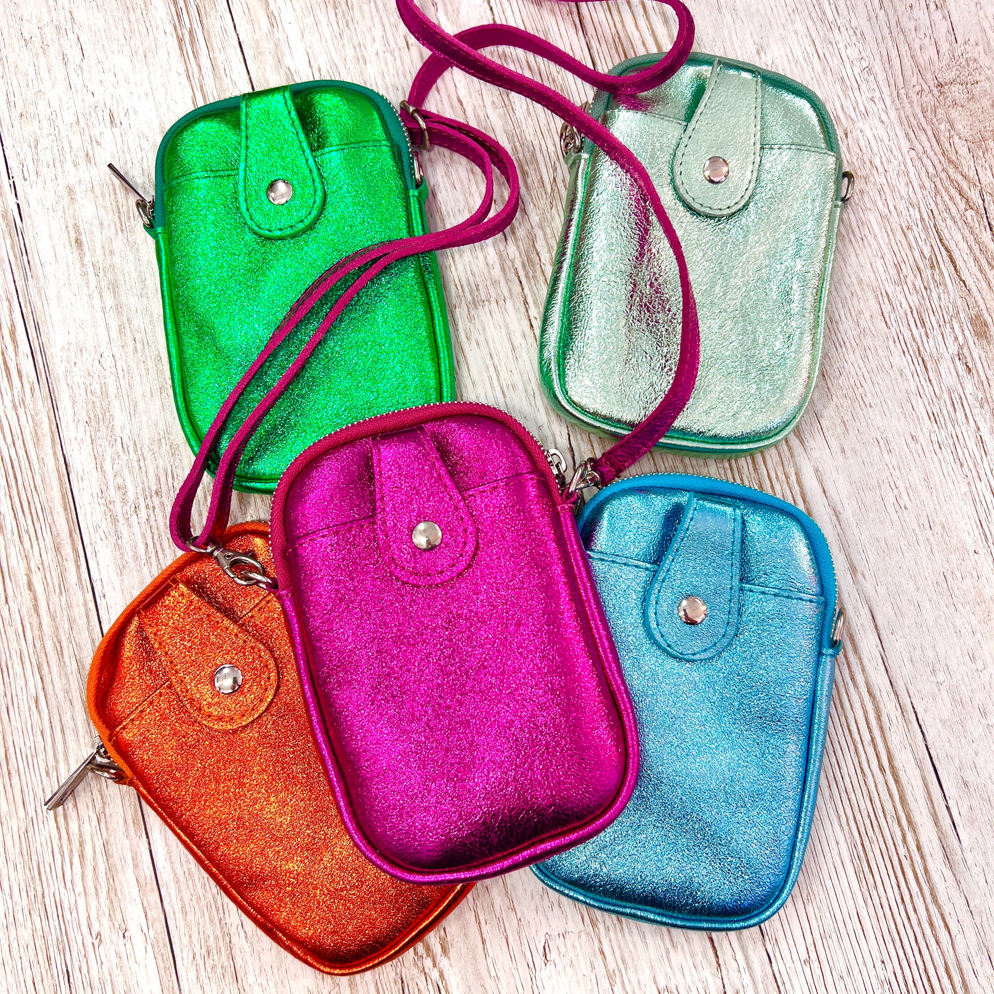 Metallic Brights Leather Phone Bag