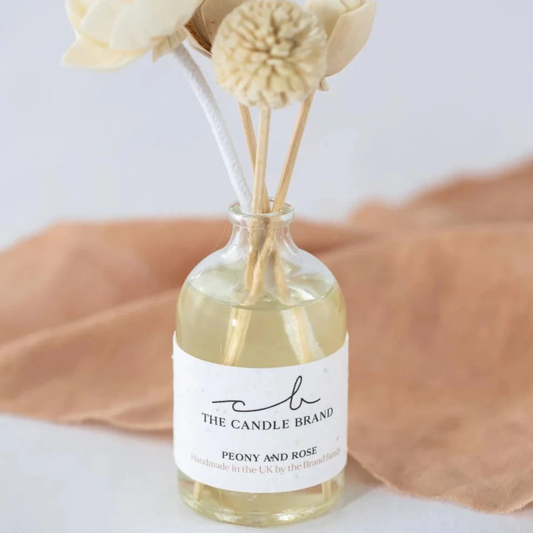 A uniquely fragranced flower bouquet powered by both reeds and a cotton rope; beautifully displayed in a clear glass vase. Featuring a wildflower seeded label ready to be planted. No more boring reeds, no more messy turning!
