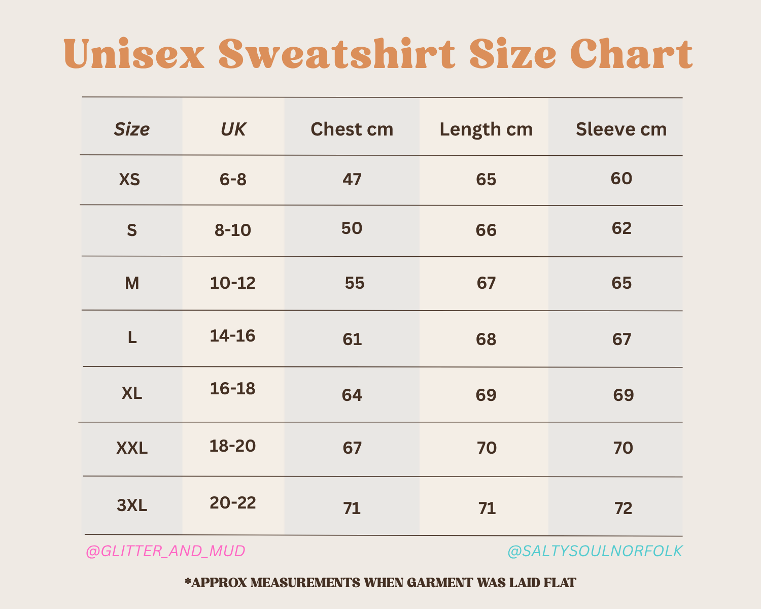 • Unisex sizing, size down for a more fitted look • Designed & hand printed in store • Crew neck • Dropped shoulder • Brushed fleece inner • Vegan certified • 80% Cotton / 20% Recycled Polyester • Machine wash at 30° / Do not tumble dry / Iron on reverse